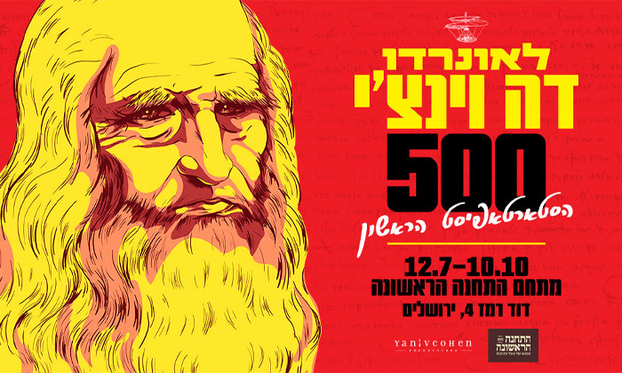מציינים את 500 שנים למותו של לאונרדו דה וינצ’י בתערוכה ייחודית, מרתקת וצבעונית במתחם התחנה הראשונה בירושלים, התערוכה מוקדשת לגאון האוניברסלי, איש הרנסנס שסקרנותו האינסופית משתווה לכוח ההמצאה שלו. בואו לראות את התערוכה המרהיבה, דרך עיניו של אחד הממציאים הגדולים בהיסטוריה – מדען, מתמטיקאי, מהנדס, ממציא, צייר, פסל ואדריכל, שהקדים את זמנו במאות שנים. בתערוכה יוצגו מכונות ענק שנבנו בהשראת תכניותיו ושרטוטיו של דה וינצ'י, לצד טכנולוגיות חדשות היוצרות חוויית ביקור מרתקת ומהפנטת. ציורים, שרטוטים ועוד – כל זאת באווירה מרתקת ואינטראקטיבית המתאימה לכל המשפחה. לרשות המבקרים חנייה בשלושת חניוני התחנה (כחול לבן – בתשלום).