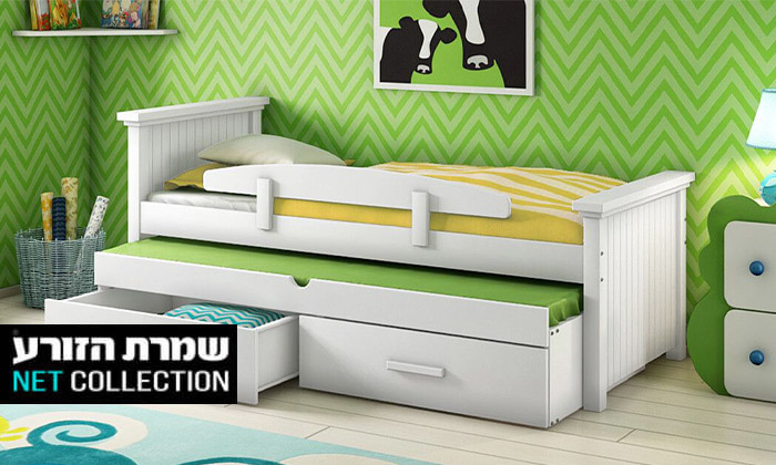 מיטת ילדים דגם 'לגונה' עם מיטת חבר נשלפת, מעקה בטיחות וזוג מזרנים אורתופדיים, החל מ-1,950 ₪