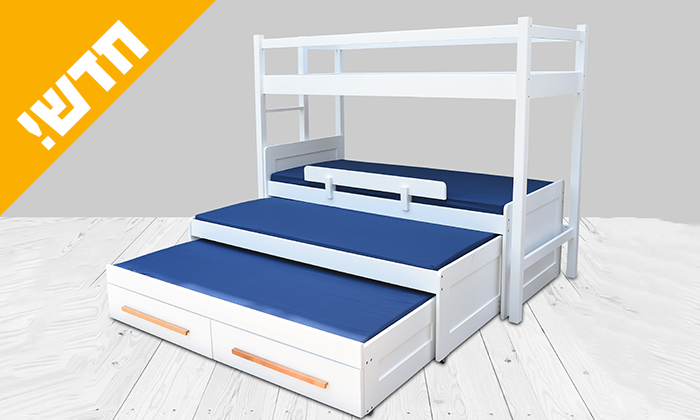 מיטת ילדים לבחירה: מיטה נפתחת דגם דניאל או מיטת גלריה גבוהה דגם ניקול