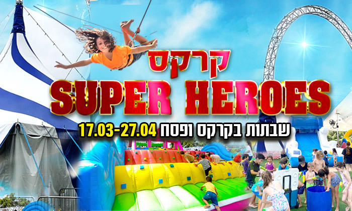 תתכוננו להיות מאושרים! קרקס גיבורי על – Super Heroes בפסח ובשבתות: מופע לכל המשפחה בקרקס פלורנטין, אם המושבות. חוגגים בשבתות ובפסח בקרקס גיבורי על: מופע לכל המשפחה והפנינג עם סדנאות ומתנפחים בקרקס פלורנטין, ב 69 ש"ח.