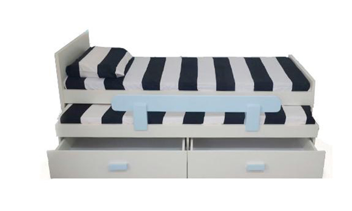מיטת ילדים ונוער הכוללת מיטת חבר נשלפת, שני מזרנים, מעקה בטיחות ושתי מגירות אחסון ב-1,390 ₪