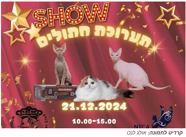 מחפשים יום כיף מושלם לכל המשפחה? הצטרפו אלינו לתערוכת חתולים בינלאומית מיוחדת ומופע ילדים מרתק שיגרום לילדים להתאהב! כניסה חינם לילדים מתחת לגיל 2! שעות פתיחה: 10:00-15:00